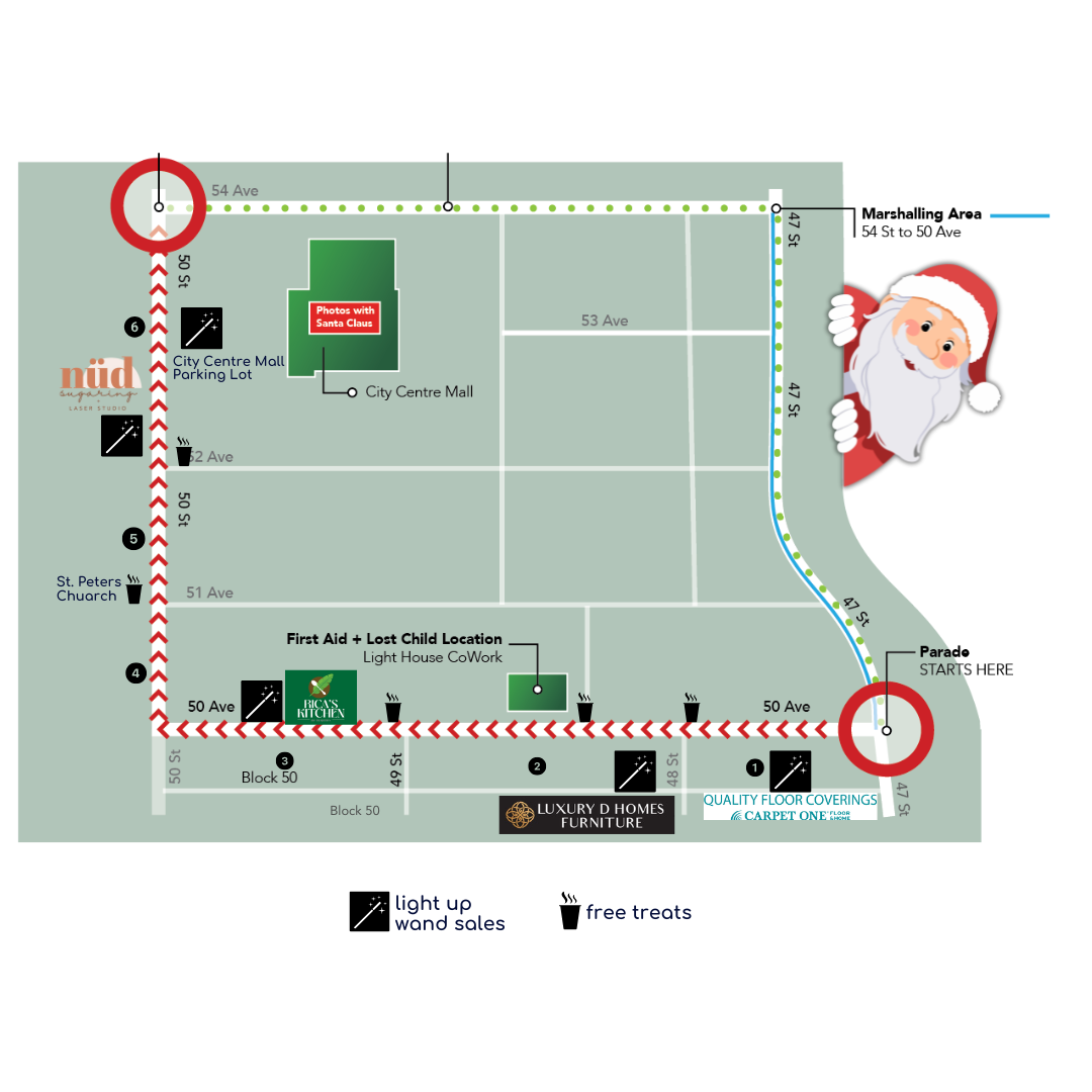 5:00pm: FREE Treats at 6 locations throughout the Downtown District. Light Up Wand Sales throughout the parade route (CASH ONLY). Locations will be communicated on a map 1 week prior to the event.